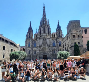 Die Gruppe hatte zwei Ferienhäuser in Canet de Mar für sich, miteinander verbunden durch einen kleinen Hof, auf dem sich am Abend regelmäßig alle trafen. Meist waren die Tage zur freien Gestaltung - die meisten der Jugendlichen genossen daher natürlich ausgiebig den wunderschönen Stand direkt vor der Haustür. Hier wurde dann auch fast jeden Abend Volleyball gespielt. Es standen aber auch zwei gemeinsame Ausflüge auf dem Plan: Einen Tag ging es mit dem Zug nach Barcelona, wo unter anderem die beeindruckende Kathedrale bestaunt werden konnte, ein weiteres Ausflugziel war die nahegelegene Stadt Calella.